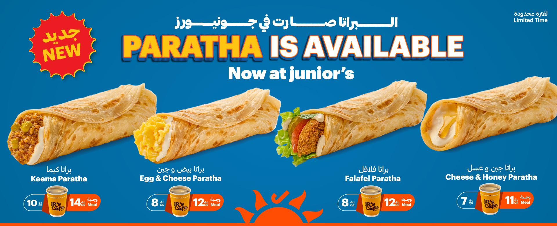 A smooth blend of cream cheese and golden honey in freshly baked paratha, served with a drink of your choice...
