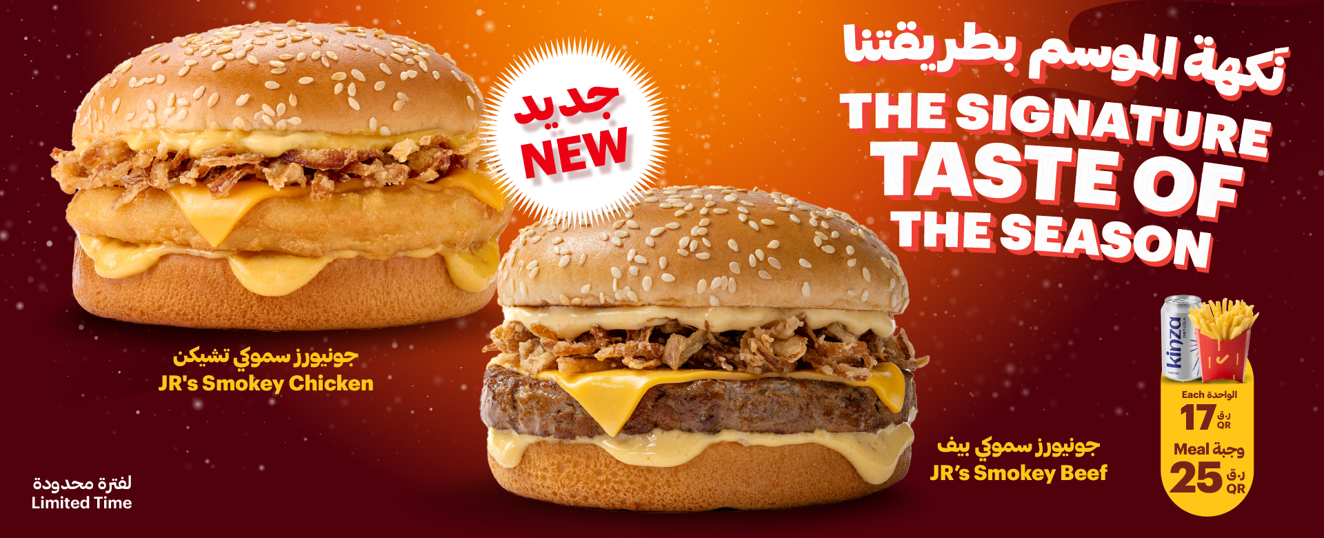 Double beef patties with cheese, lettuce, onions, smoky sauce, and pickles in Big JR’s bun. Served with large fries and...